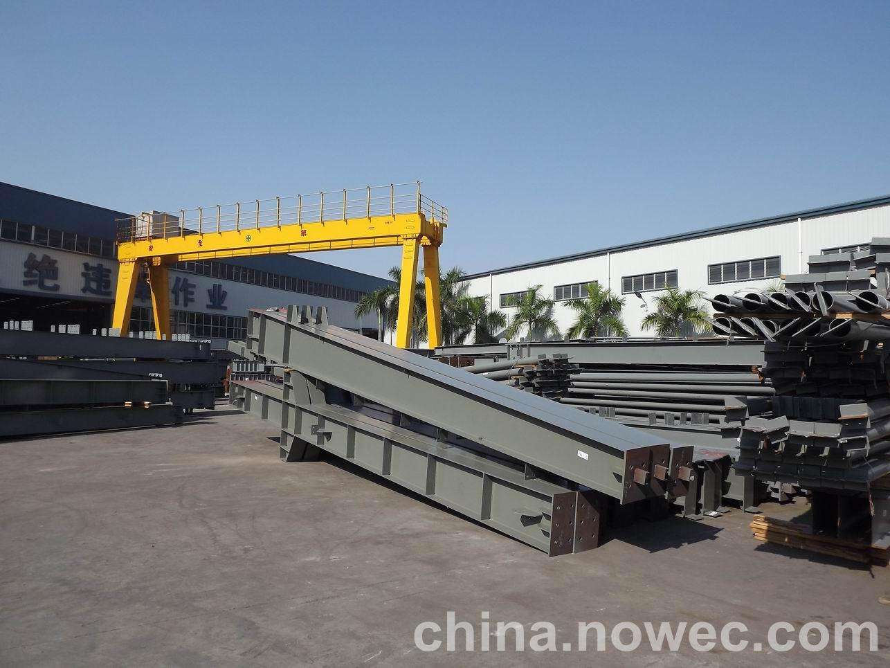 条状单元一般沿长跨方向分割,其宽度约为1~3个网格,其长度为l2或l2/2(l2为短跨跨距)。块状单元一般沿沧州网架平面纵横向分割成矩形或正方形单元。每个单元的重量以现有起重机能胜任为准。条(块)与条(块)之间可以直接拼装,也可空一网格在高空拼装。由于条(块)状单元是在地面拼装,因而高空作业量较高空散装法大为减少,拼装支架也减少很多,又能充分利用现有起重设备,故较经济。这种安装方法适用于分割后网架的钢度和受力状况改变较小的各类中小型网架,如两向正交正放四角锥、正放抽空四角锥等网架。